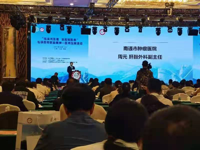 南通市肿瘤医院副主任医师周元代表青年医生进行了发言。他表示将不忘初心、牢记使命,全心全意为人民健康服务,用行动续写健康生命的新篇章,将希波克拉底誓言进行到底!