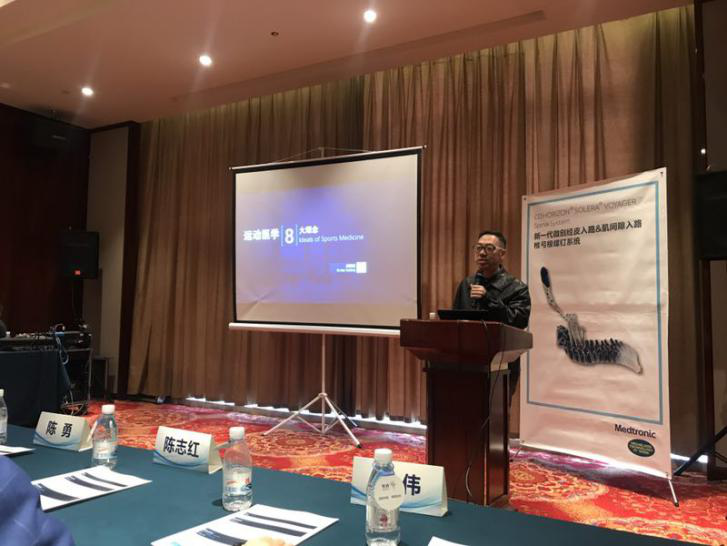 会议上半场,沈忆新教授以“创伤后脊柱侧弯的治疗”为主题,结合病例讲解脊柱侧弯治疗的独特理解;刘军教授分享了脊柱术后ASD的病因与治疗方案,两位教授着重阐述了脊柱手术过程。随后,郝跃峰教授就运动医学理念在骨科中的应用为主题进行解读,分享临床中的经验和体会;陈勇教授围绕“围术期疼痛病人的管理”阐述了多模式镇痛理念,并提出在多模式镇痛中NSAIDS类药物应选择COX-2抑制剂来降低胃肠道副作用;最后尹毅教授对骨质疏松骨折诊疗指南进行了解读,讲解了唑来磷酸在骨质疏松骨折中的应用。