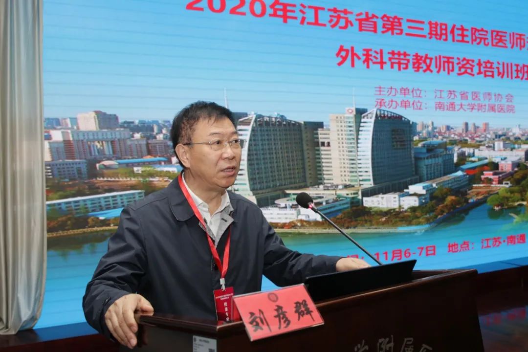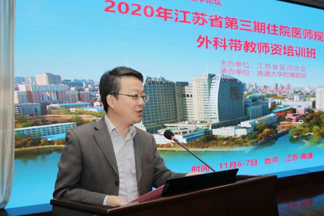 由江苏省医师协会主办,南通大学附属医院承办的2020年江苏省第三期住院医师规范化培训外科带教师资培训班于11月6日-7日在南通大学附属医院影像中心4楼报告厅举办。江苏省医师协会副会长兼秘书长刘彦群、南通大学附属医院党委书记高建林、中国医师协会医师培训学院培训部副主任邢立颖出席开幕式并致辞。开幕式由南通大学附属医院教育培训处处长周庆主持。来自全省41家国家级住院医师规范化培训基地及协同单位的160名外科专业带教老师参加了培训。