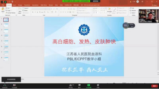 随后开展的工作坊是来自江苏省人民医院血液科的带教老师和住培学员一起展示了针对血液科患者的病例特点,开展临床病理生理及治疗(CPPT)教学模式联合PBL模式,训练诊疗思维和提高住培医师的自身学习能力的实践过程。带教老师有张晓艳、王帅(临床),张建富、王蓉(细胞形态学),吴雨洁(流式细胞术),乔纯(分子生物学),仇海荣(细胞遗传学);规培学员有李悦、张馨予、繆祎、史青林、秦姝超;由张闰主任主持。