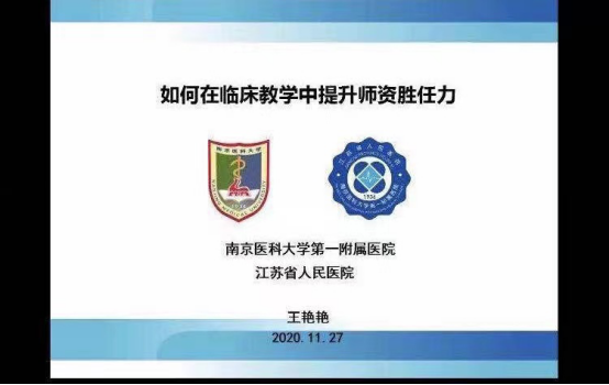全国住院医师规范化培训“优秀带教老师”、江苏省人民医院王艳艳主任作《如何在临床教学中提升师资胜任力》的讲座。