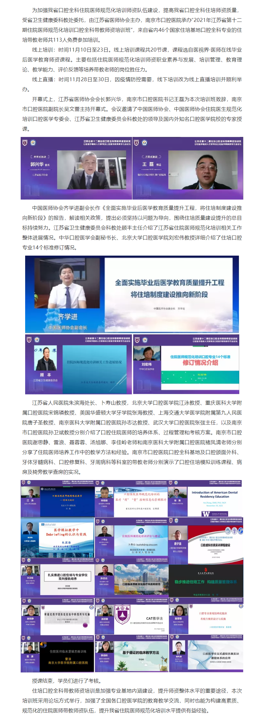 2021年江苏省第十二期住院医师规范化培训口腔全科带教师资培训班顺利举办