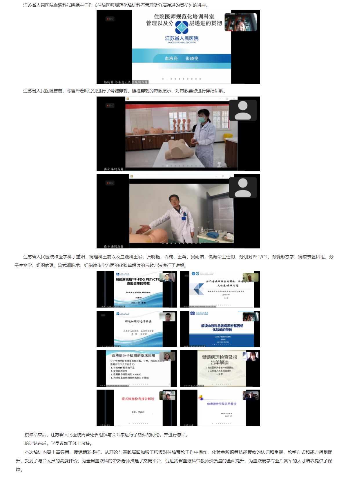 为加强我省血液科住院医师规范化培训师资队伍建设,提高我省血液科住培师资质量,2021年11月27日至28日由江苏省医师协会,江苏省医师协会血液科医师分会主办,江苏省人民医院承办的“2021年江苏省第十五期住院医师规范化培训血液科带教师资培训班”在线上顺利举办,来自省内153名血液科专业的住培带教老师免费参加培训。