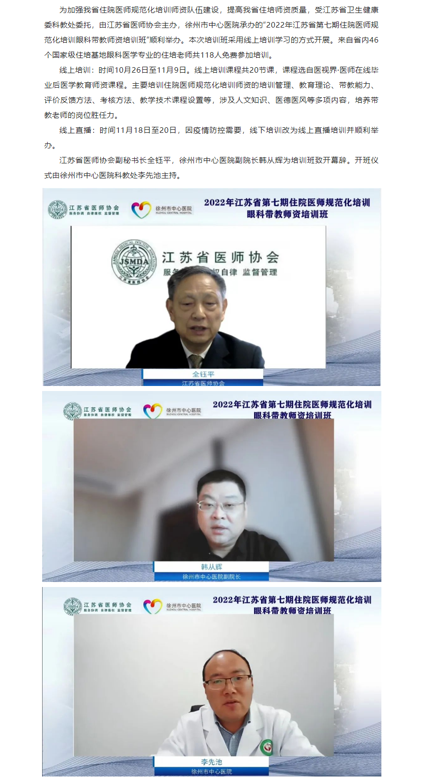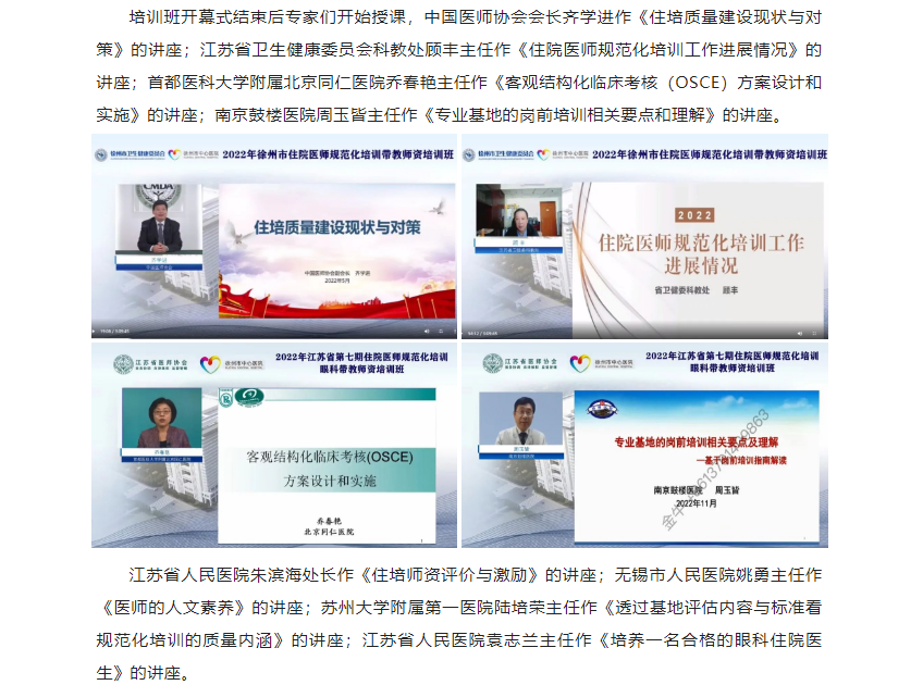 【住培动态】2022年江苏省第七期住院医师规范化培训眼科带教师资培训班顺利举办