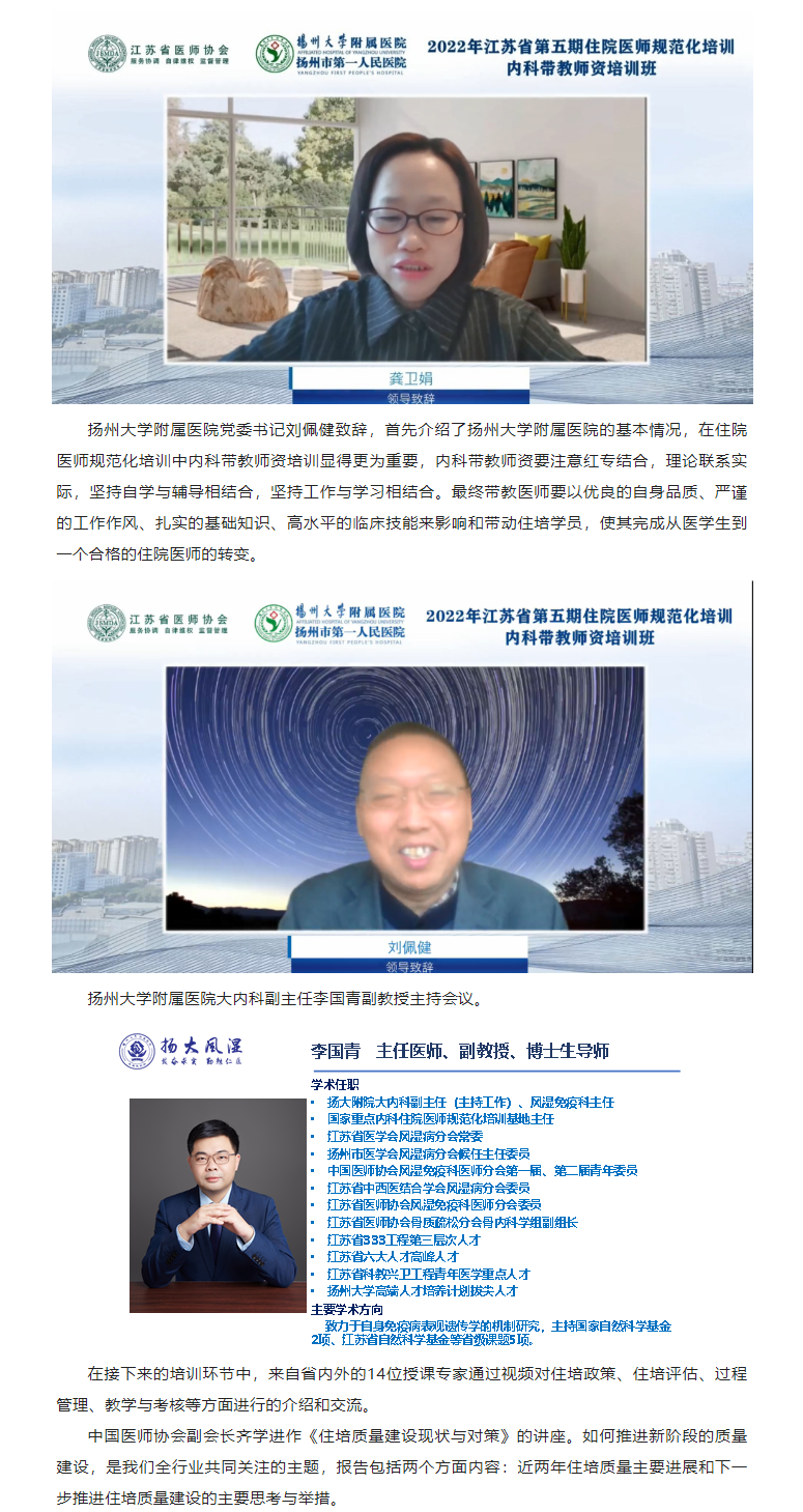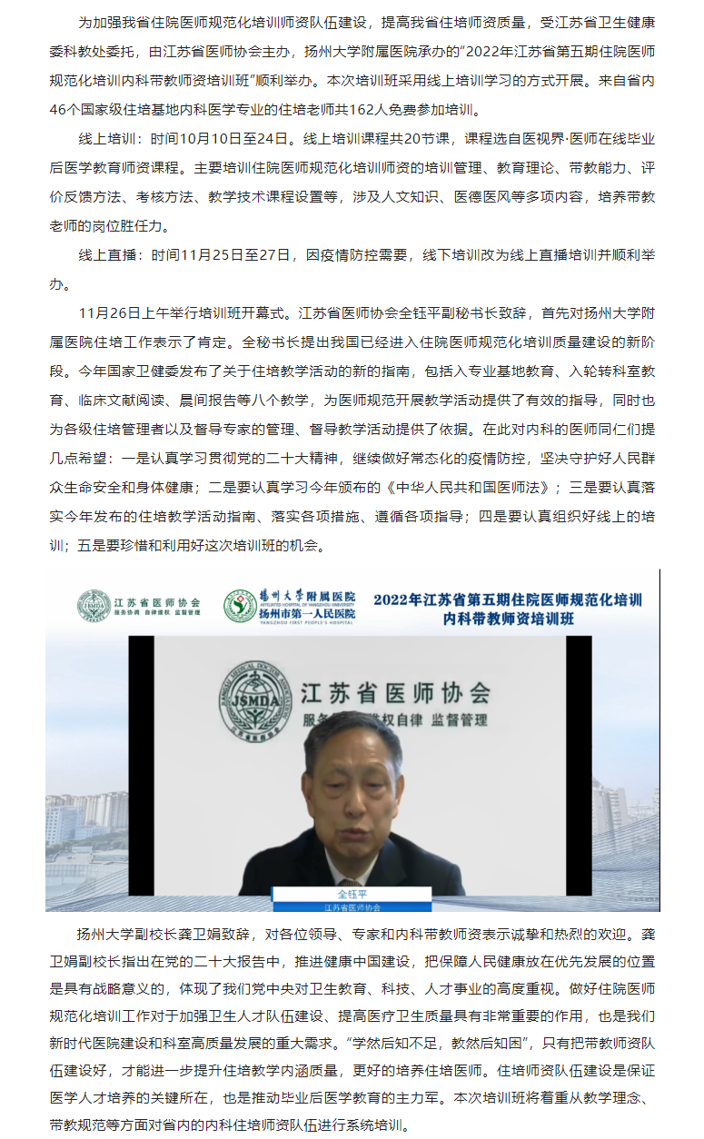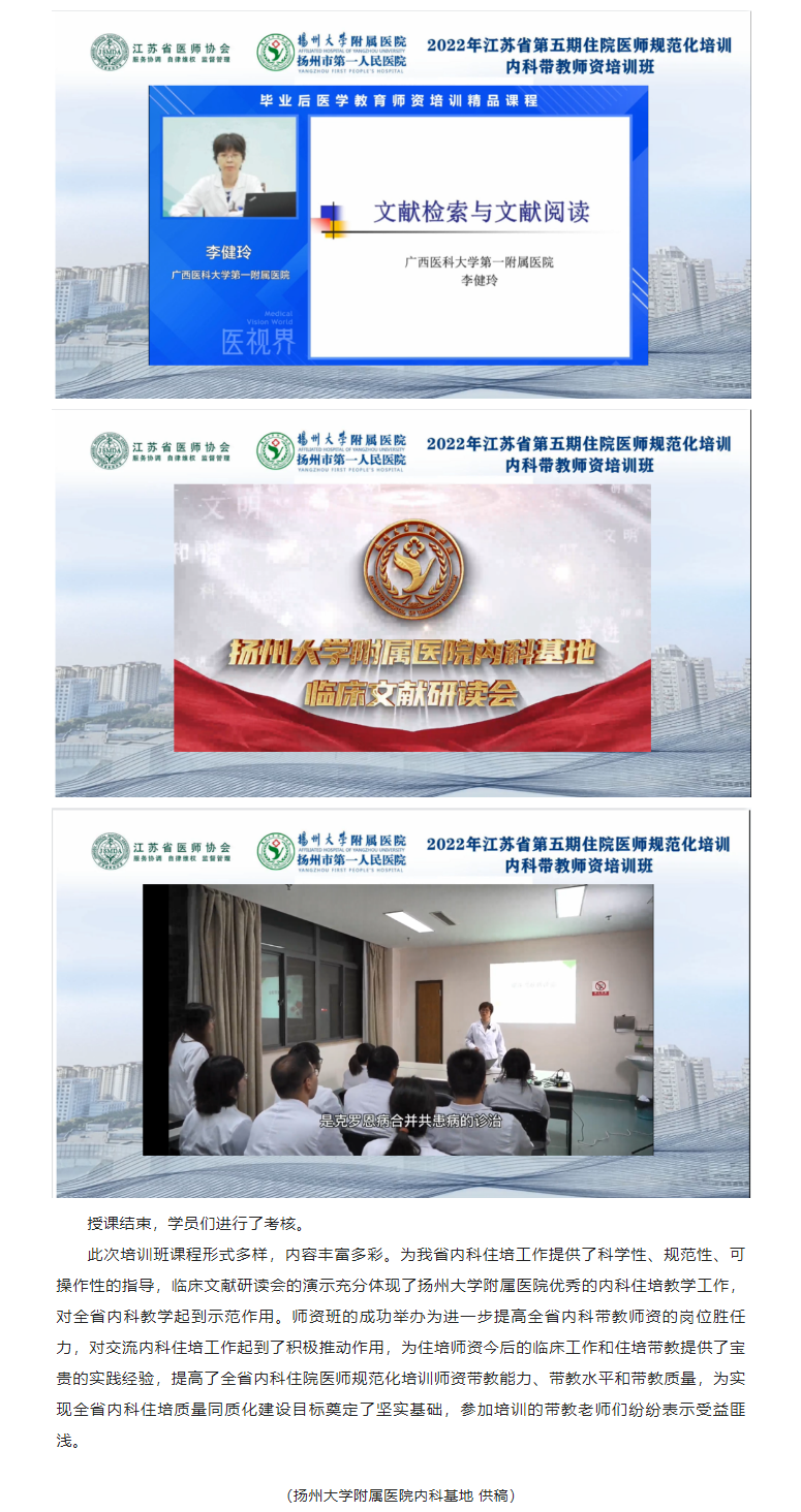 【住培动态】2022年江苏省第五期住院医师规范化培训内科带教师资培训班顺利举办
