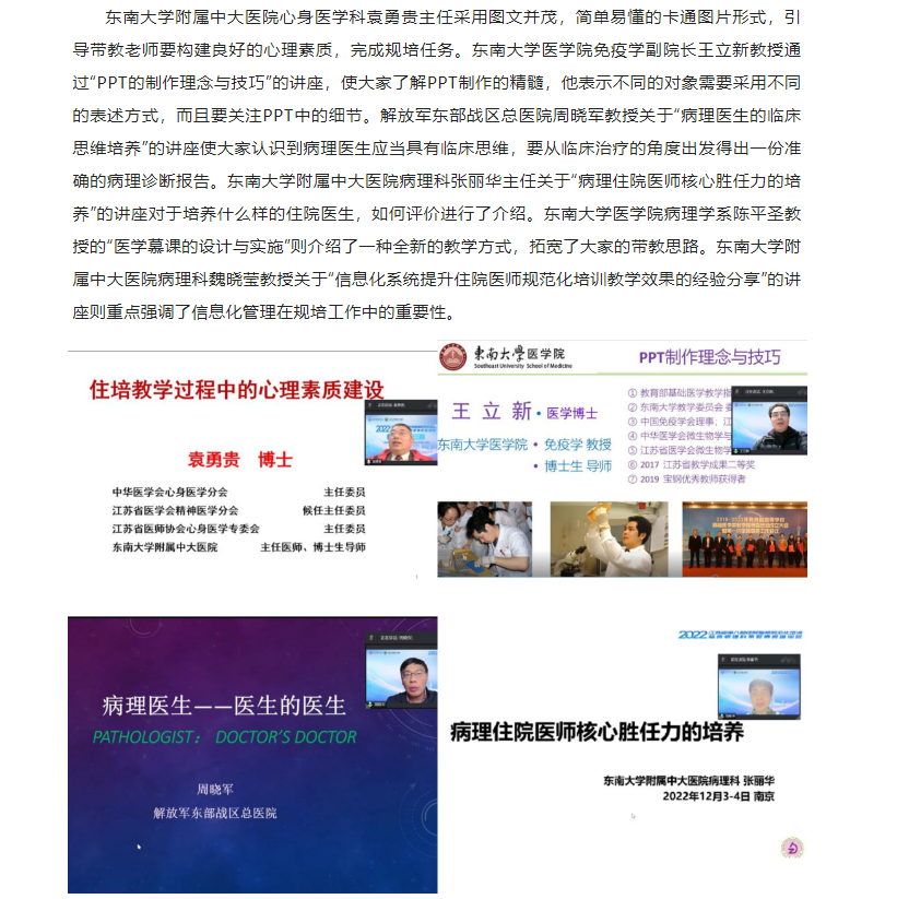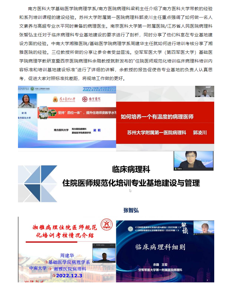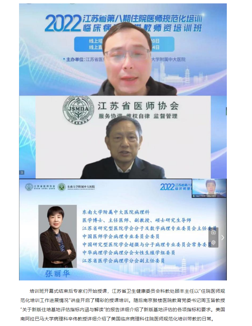 为加强我省住院医师规范化培训师资队伍建设,提高我省住培师资质量,受江苏省卫生健康委科教处委托,由江苏省医师协会主办,东南大学附属中大医院承办的“2022年江苏省第八期住院医师规范化培训临床病理科带教师资培训班”顺利举办。本次培训班采用线上培训学习的方式开展。来自省内46个国家级住培基地临床病理科医学专业的住培老师共112人免费参加培训。
