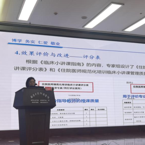 南京鼓楼医院临床医学院副院长周玉皆作《从住培两个新标准谈带教师资的教与考》讲座,为学员们详细解读了《住院医师规范化培训教学活动指南》和两个标准(2022版),指出开展和构建分层递进里程碑岗位胜任力培训模式,特别介绍了医学教育课程开发-六步法。