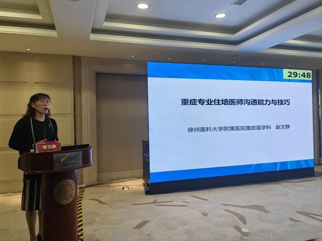 徐州医科大学附属医院赵文静教授作《重症专业住培医师沟通能力与技巧》讲座。