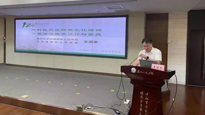 苏北人民医院院长束余声教授致欢迎辞,代表医院向参加本次活动的省内外专家和外科同道们表示热烈的欢迎和衷心的感谢,同时详细介绍了规范化住培基地建设和提升住院医师规范化培训质量的重要意义,希望参加本次培训的各位同道以本次培训为平台,认真学习,虚心请教,积极分享,充分交流,在引领学科发展的同时,为江苏省医疗事业的进步和人才培养做出积极贡献。