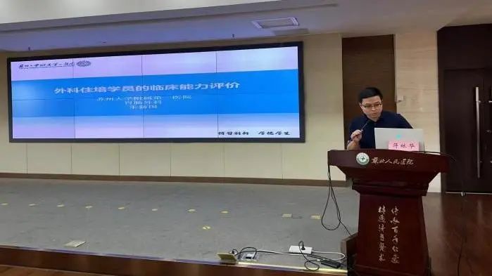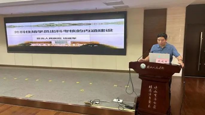 南通大学附属医院薛万江教授作《外科专业的技能培训与模拟教学的规范开展》的讲座;扬州大学附属医院戴勇教授作《外科专业的教学病例讨论的选择与实施》的讲座、苏州大学附属第一医院蒋林华教授作《外科住培学员的临床能力评价》的讲座、江苏省苏北人民医院钱建军教授作《外科住培学员的出科考核的内涵建设》的讲座。