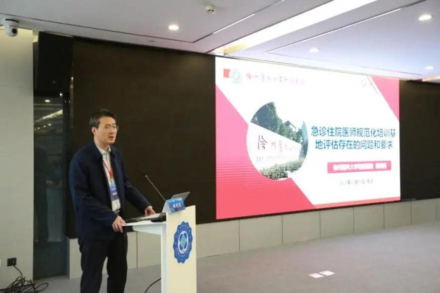 其后,分别由江苏省人民医院教育处处长朱滨海做《有效执行住培两个新版标准的改进策略》专题讲座;南通市第一人民医院陈建荣教授做《急诊教学师资队伍的建设、管理与考核》专题讲座;南通大学附属医院黄中伟教授做《强化过程管理,提升教学质量》专题讲座;苏州大学附属第一医院徐峰教授做《在带教工作中如何锻炼急诊住院医师的临床思维》专题讲座;江苏省中医院芮庆林教授做《急诊临床技能培训的实施》专题讲座;常熟市第一人民医院陈波教授做《急诊科住院医师医学人文素养的培养》专题讲座;泰州市人民医院顾彬教授做《急诊教学门诊的设计与实施》专题讲座;江苏省人民医院陈旭锋教授做《急诊专业住院医师的培训和考核相关标准》专题讲座;江苏省人民医院康健教授做《PBL、CBL教学在急诊带教中的应用》专题讲座;常州市第一人民医院王大明教授做《如何提高急诊住院医师的医患沟通能力》专题讲座;江苏大学附属医院任国庆教授做《急诊结业考核的应对和提升》专题讲座;东部战区总医院张炜教授做《分层递进式教学的实施》专题讲座;淮安市第一人民医院孙虹教授做《课程设计与授课技巧》专题讲座;南京鼓楼医院王军教授做《如何引导急诊住院医师进行临床科研设计》专题讲座;无锡市第二人民医院屠苏教授做《关注急诊住培医师的身心健康》专题讲座;苏州大学附属第二医院朱建军教授做《如何构建急诊住院医师培训精品课程》专题讲座;南京市第一医院秦海东教授做《如何准备教学查房》专题讲座。