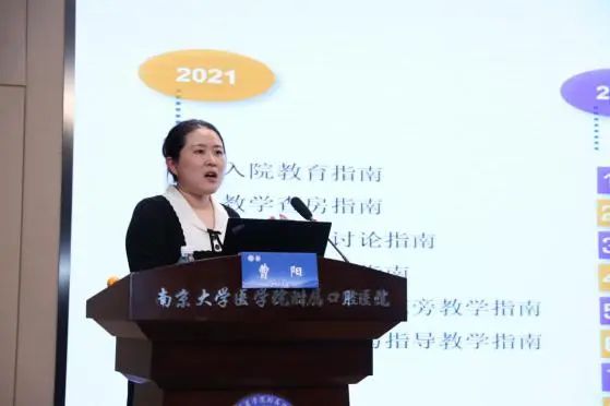 南京大学医学院附属口腔医院梁慧副主任作《口腔住院医师叙事医学能力的培养》的讲座;南京大学医学院附属口腔医院吴丽主治医师作《口腔住院医师综合考核体系的建立与实施》的讲座;南京大学医学院附属口腔医院曹阳主治医师作《口腔全科住培教学病例讨论的设计与实施》的讲座。