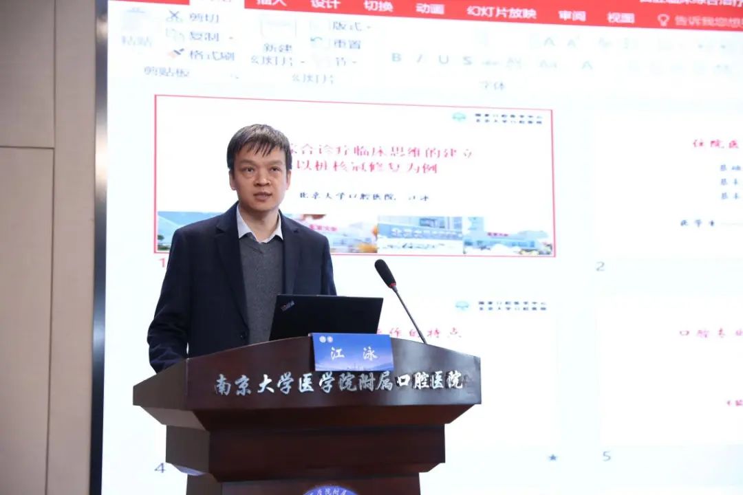 本次培训班的专题报告部分由南京大学医学院附属口腔医院吴文蕾副院长主持,北京大学口腔医学院副院长江泳教授作《口腔住院医师综合治疗思维的建立》的专题汇报。江院长以口腔临床综合病例为切入点,探讨了带教老师培养住院医师的综合治疗思维的路径和方法,强调住院医师临床思维在帮助正确快速判断患者病情并作出科学诊疗决策上发挥着重要的作用。