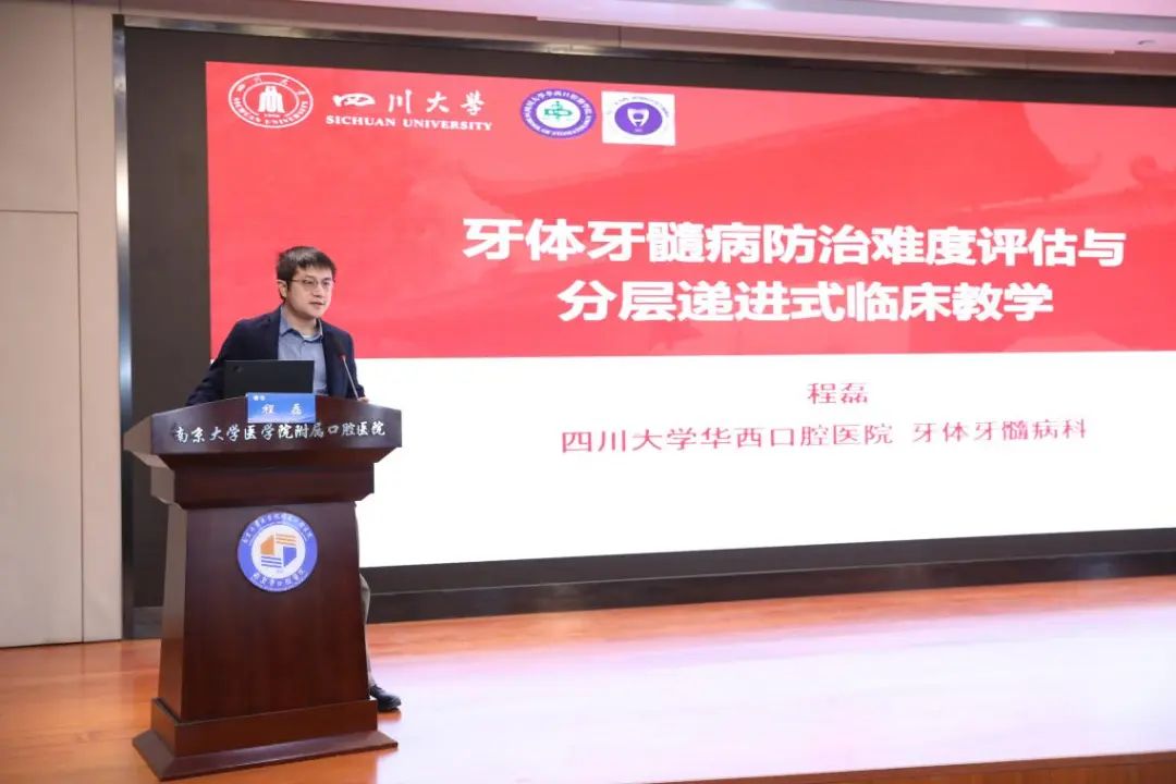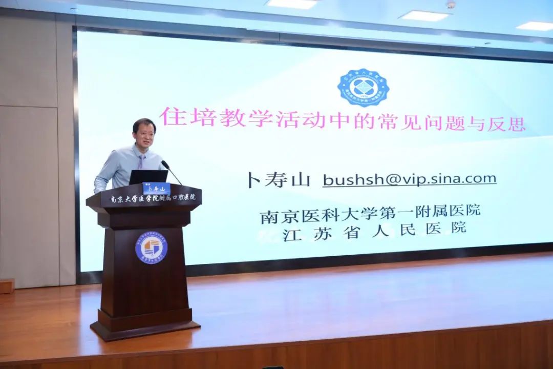 江苏省口腔医院张光东主任作《以岗位胜任力为导向的口腔全科住院医师规范化培训》的讲座;南京大学医学院附属口腔医院谢思静主任作《基于循证的口腔住院医师案例教学设计》的讲座;南京大学医学院附属口腔医院李厚轩主任作《千锤百炼--夯实牙周病科住培教学中的基础知识与基本技能》的讲座;南京大学医学院附属口腔医院孙国文主任作《口腔颌面外科住院医师规培教学查房要点》的讲座。