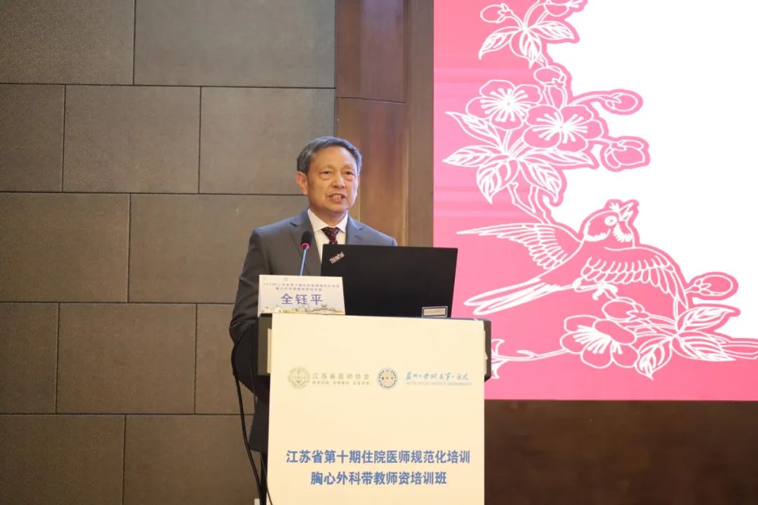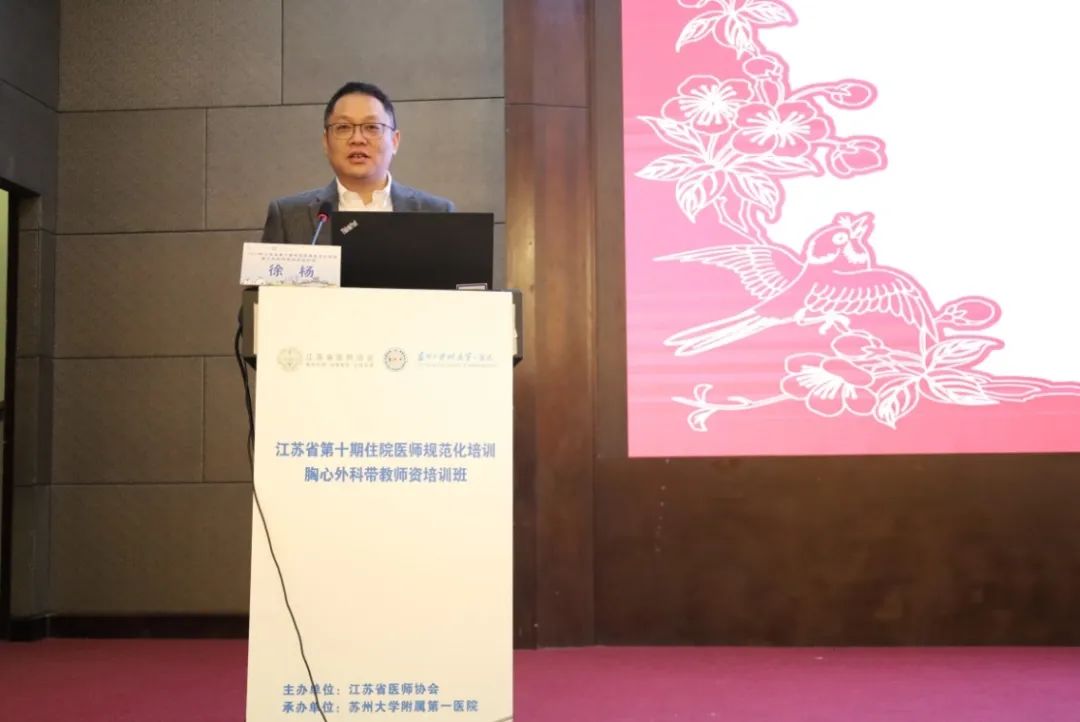 江苏省医师协会全钰平副秘书长首先对本次师资培训班的顺利召开表示热烈祝贺,他充分肯定了苏州大学附属第一医院在住培工作中取得的成绩,对胸心外科住培工作提出了几点希望,对推进师资培训工作进行了部署。他表示卫生健康事业的高质量发展离不开高素质医学人才的培养,希望大家充分意识到住院医师规范化培训的重要意义,共同努力,使江苏省胸心外科专业住培基地走在全国前列。
