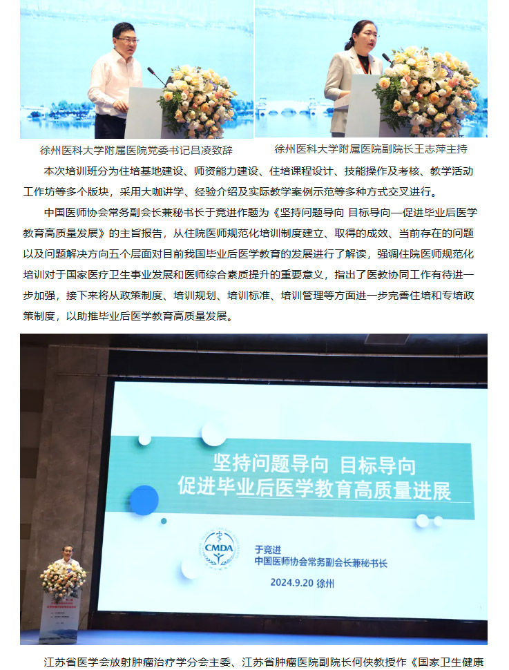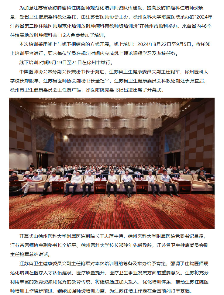【住培动态】2024年江苏省第二期住院医师规范化培训放射肿瘤科带教师资培训班在徐州顺利举办