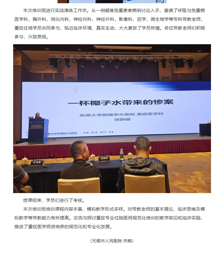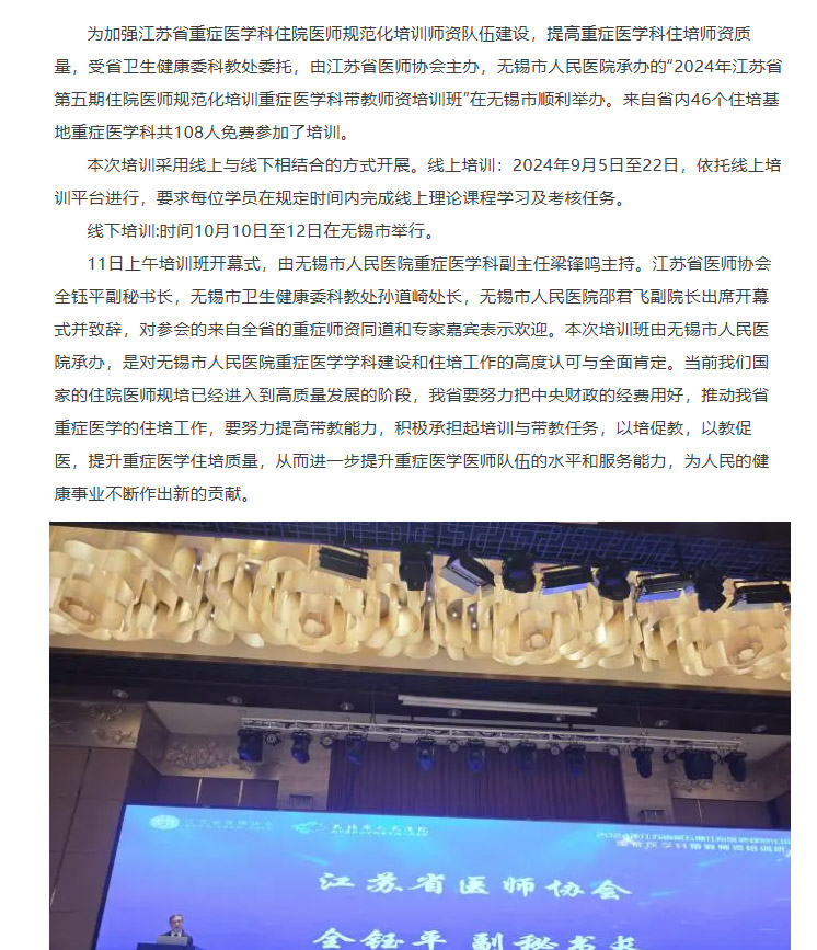 【住培动态】2024年江苏省第五期住院医师规范化培训重症医学科带教师资培训班在无锡顺利举办