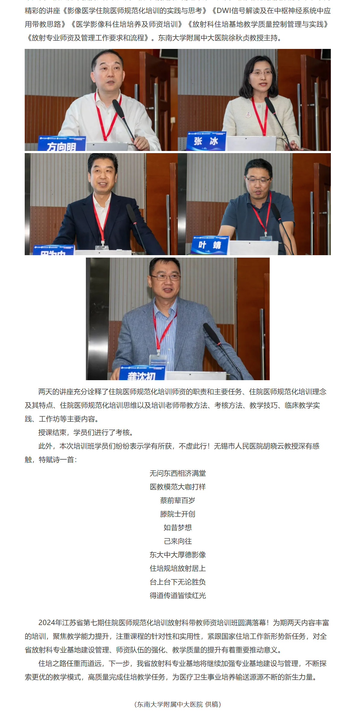 【住培动态】2024年江苏省第七期住院医师规范化培训放射科带教师资培训班顺利举办!