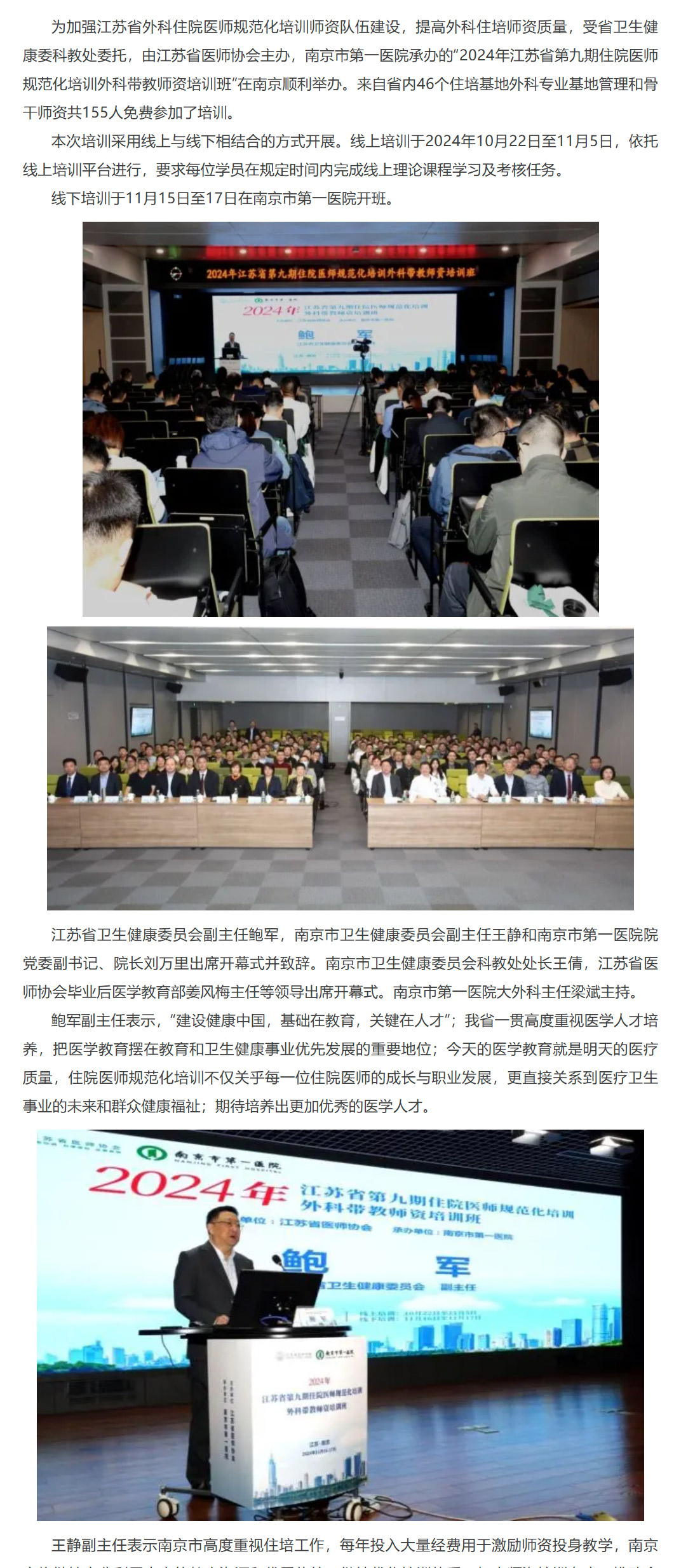 【住培动态】2024年江苏省第九期住院医师规范化培训外科带教师资培训班在南京顺利举办