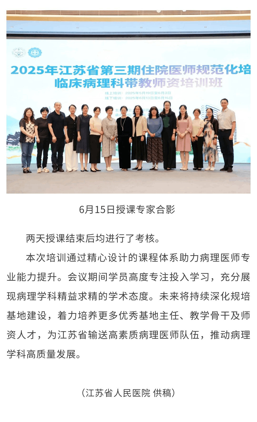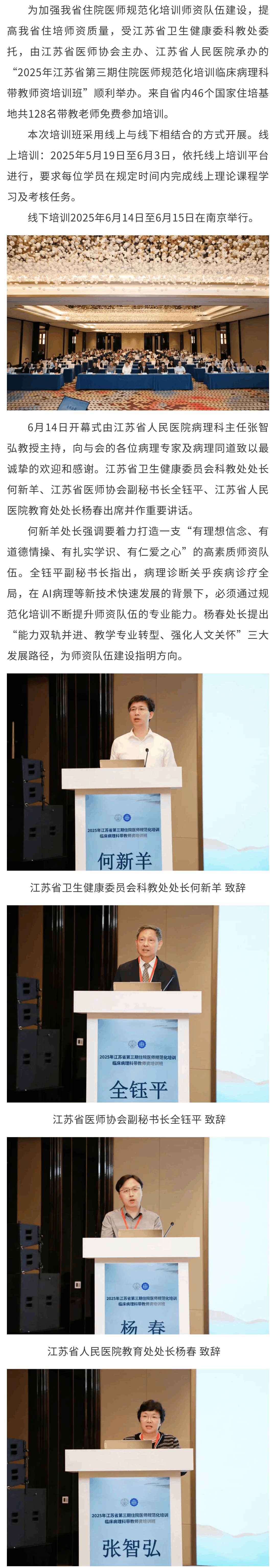 【住培动态】2025年江苏省第三期住院医师规范化培训临床病理科带教师资培训班在南京顺利举办