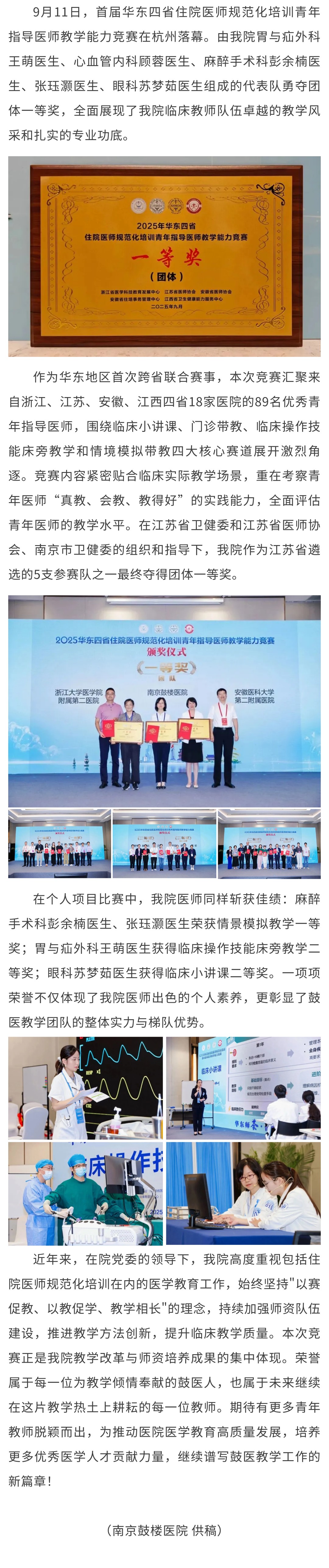 【住培动态】南京鼓楼医院荣获首届华东四省住培教学能力竞赛团体一等奖