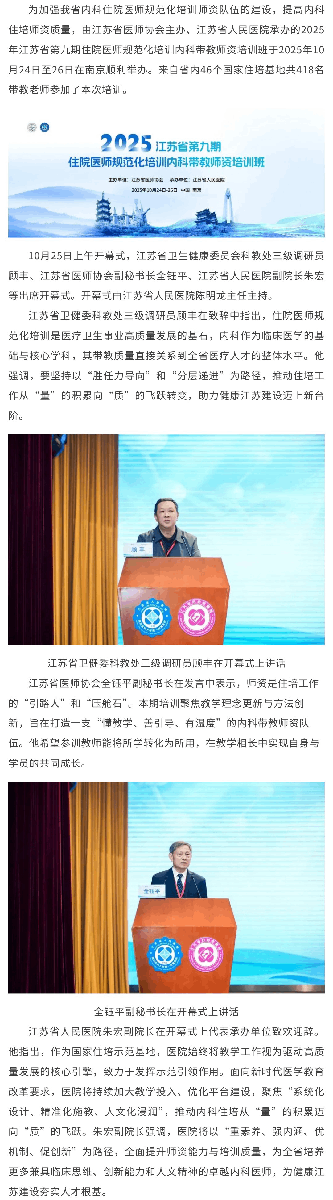 【住培动态】2025年江苏省第九期住院医师规范化培训内科带教师资培训班在南京成功举办