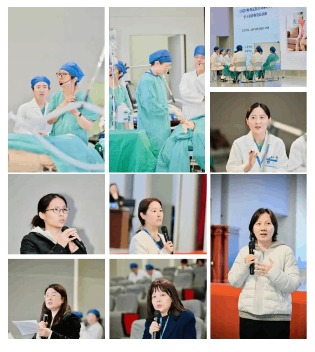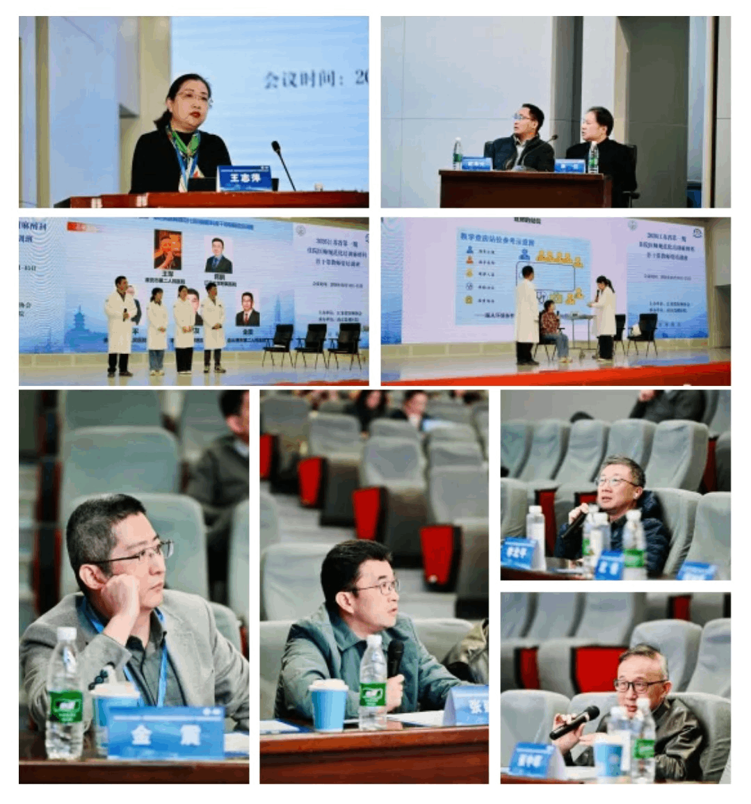 随后开展教学查房workshop,徐州医科大学附属医院王志萍教授带来《教学查房:如何开展一场高质量的教学查房》,详细讲解了麻醉科教学查房的标准流程、实施要点、质量把控与教学技巧。徐州医科大学附属医院吴桐、张锋、宋歌、吴可医生以《减重不减安全:减重患者围术期麻醉管理》为主题进行教学查房示范,直观展现了高质量教学查房的实操过程与核心环节,王军、蒋鹏、李北平、张建友、金震专家围绕示范查房展开点评,针对教学逻辑、临床重点拆解、师生互动引导等维度给出了专业指导意见。