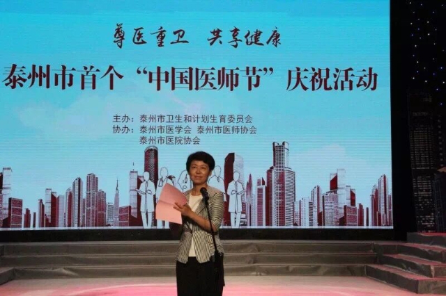 常胜梅部长在致辞中强调,医师是人民健康的守护人,是健康泰州建设的主力军。各级党委和政府要更加重视卫生计生工作,帮助医师改善工作生活条件,维护医务人员的合法权益,切实增强医师职业荣誉感。全社会都要更加理解、尊重和支持医师,加大对医疗行业的正面宣传,营造全社会尊医重卫的良好风气,努力在增进以人为本、共建共享的民生福祉上交好答卷,让城市更有温度、幸福更有质感。