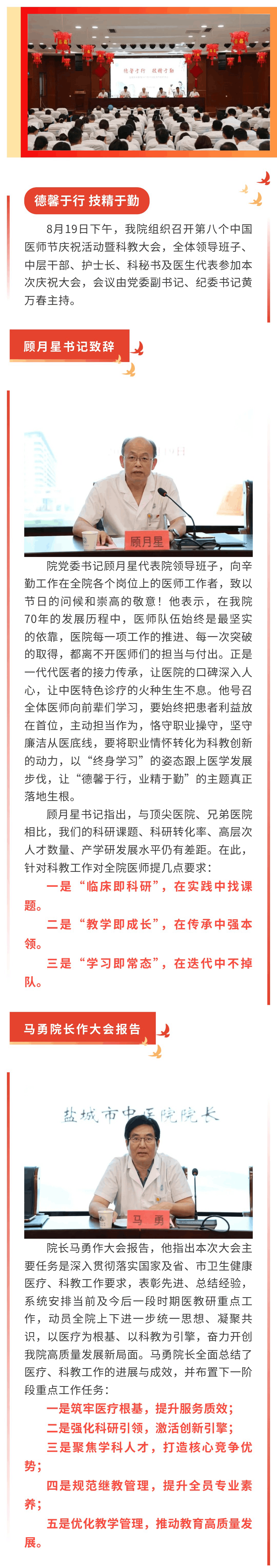 【德馨于行 技精于勤】盐城市中医院召开第八个中国医师节庆祝活动暨科教大会