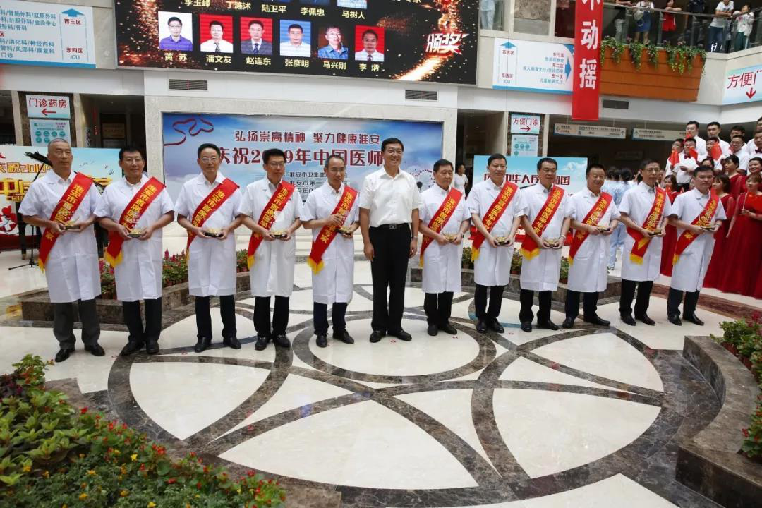 市委书记姚晓东、市长蔡丽新等市领导到市二院、清江浦区钵池山社区医院等一线医疗单位走访慰问,向全市广大医务工作者致以节日的问候和崇高的敬意,并在全市庆祝2019年“中国医师节”活动上为奉献在医疗卫生战线的优秀医师代表颁奖。市领导王维凯、刘华、王红红、孙晓阳等参加活动。