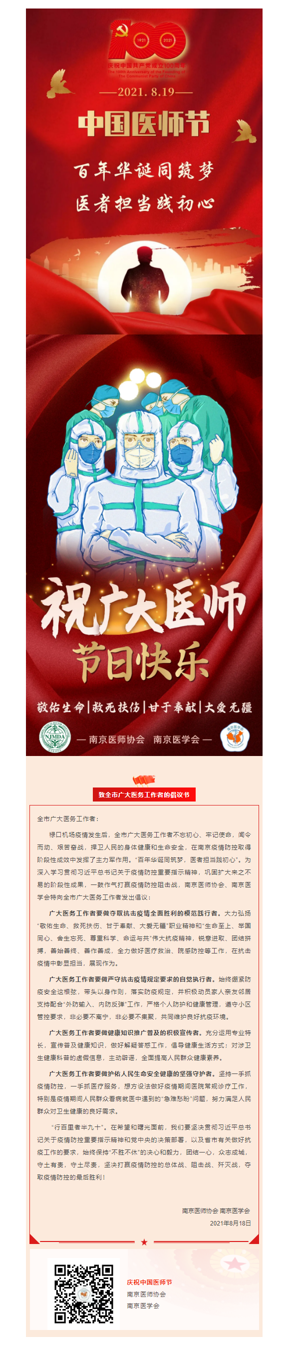 中国医师节 | 南京医师协会致全市广大医务工作者的倡议书