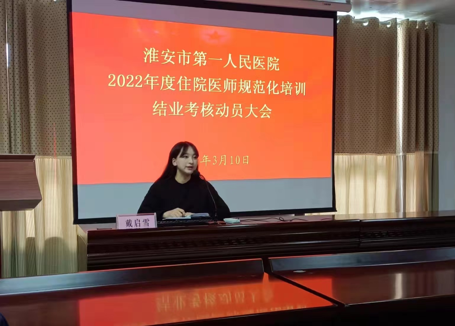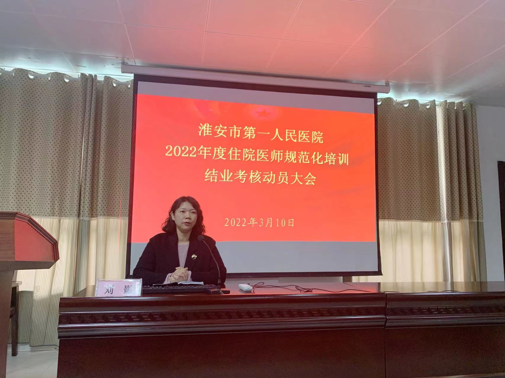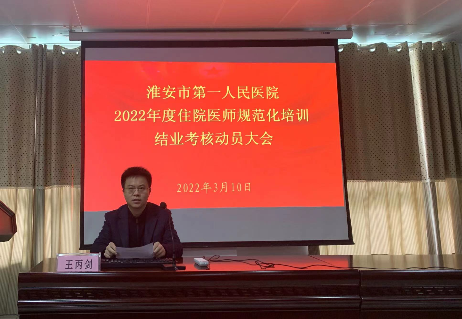 近日,淮安市第一人民医院组织召开2022年度住培学员结业考核动员会,培训处处长王丙剑、副处长刘影,住培管理工作负责人戴启雪、住培管理老师程亦鹏、专硕管理老师石玲颖、2021年度优秀结业学员代表以及110名拟参加2022年结业考核的住培学员参加了会议,此前,培训处已在教学主任会议和住培秘书会议中对老师强调了本年度住培结业考核的相关工作重点。本次会议由住培管理工作负责人戴启雪主持。