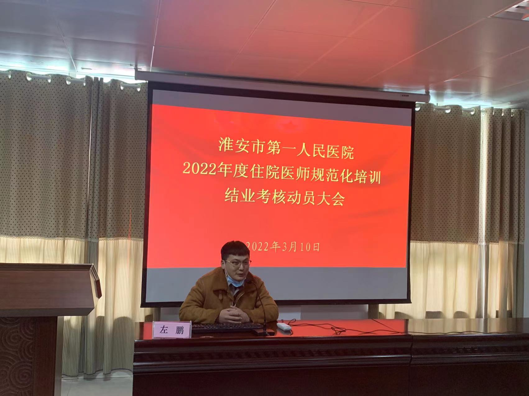 本次动员会还邀请了优秀住培学员代表:2021年度结业考核成绩全市第一名、优秀住培结业学员左鹏做经验分享。他根据自身的经历,详细分析了结业考试的难度、题型,重点强调要全面了解考试大纲要求,巩固并细化专业知识、提高现场应对能力和应试能力,也介绍了自己的备考经验、复习资料的选择以及迎考措施等内容,给今年参加考试的住培学员指明了复习备考的方向,也充分认识到结业考核的严峻性和重要性。