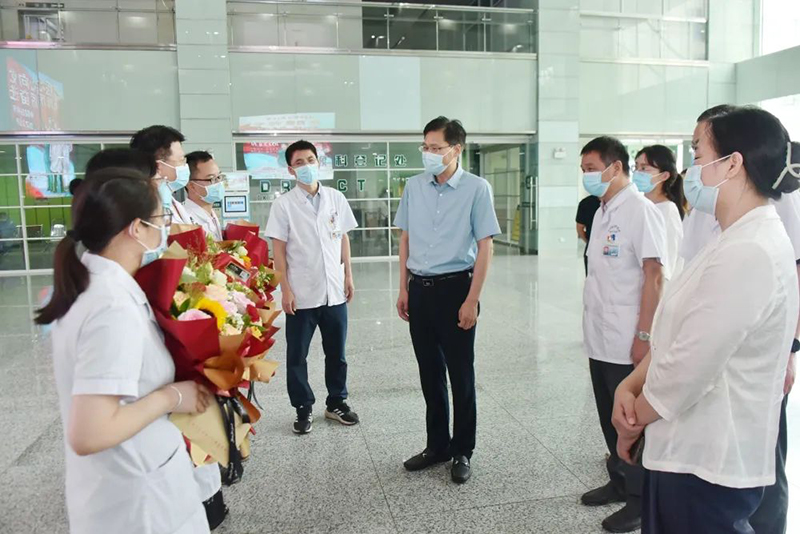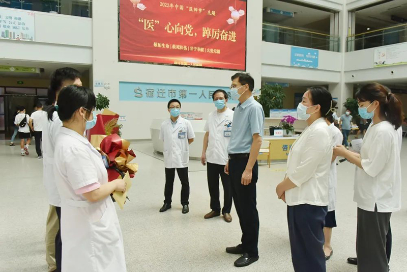 8月19日上午,副市长闫辉带队慰问奋战在一线的医师代表,为他们送上鲜花和慰问金,并向全市广大医务工作者致以节日问候和崇高敬意,对大家为宿迁卫生健康事业发展特别是抗击新冠肺炎疫情作出的贡献表示感谢。市卫健委副主任易冰、市医师协会会长管晓青陪同慰问。