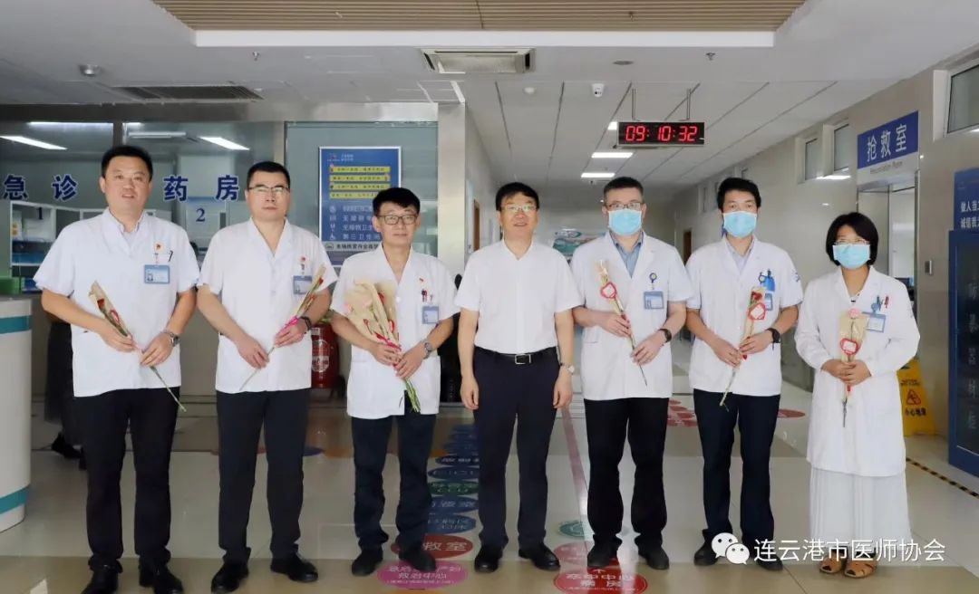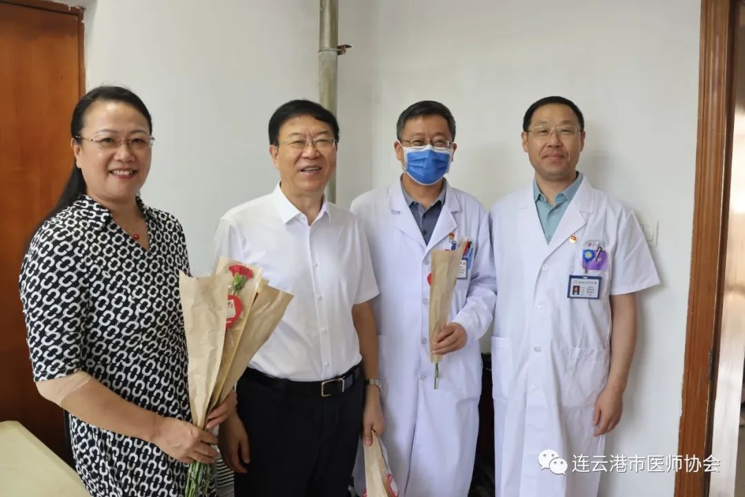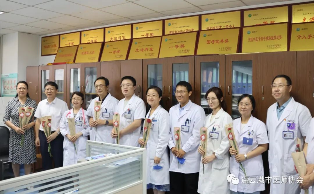 8月18日上午,在第六个中国医师节来临之际,江苏省医师协会副会长兼秘书长刘彦群教授等一行四人,来连开展“勇担健康使命,铸就时代新功”主题献花活动,为临床一线医师代表献上鲜花和节日祝福。