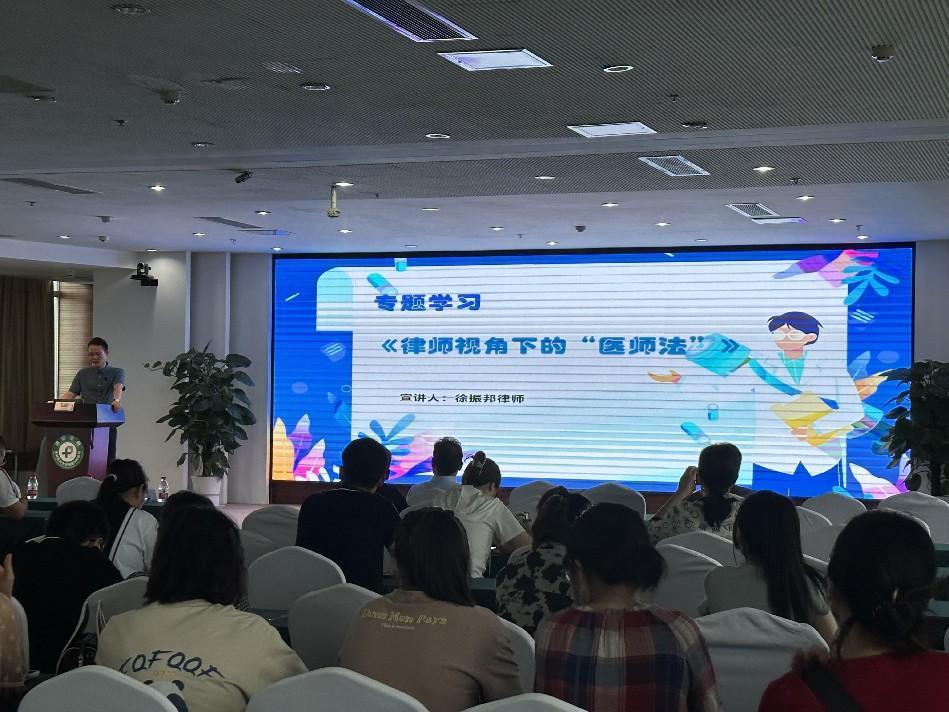 为进一步加强医师队伍建设,规范医师执业行为,保障医师合法权益,提高医务人员法律意识,在医师节期间,宿迁市医师协会邀请北京盈科(宿迁)律师事务所监事会主任徐振邦前往县区进行《中华人民共和国医师法》巡讲,并赠阅《中华人民共和国医师法》单行本和释义。
