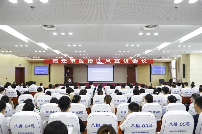 为进一步促进全市医德医风建设,宿迁市举办了全市医德医风宣讲活动。秦兵、孙明、施学文、韩瑜4名同志作为省医德之星代表,用一个个平凡鲜活的事例,诠释了大医精诚的高尚医德和宿迁卫健人爱岗敬业、开拓进取、无私奉献的精神风貌。