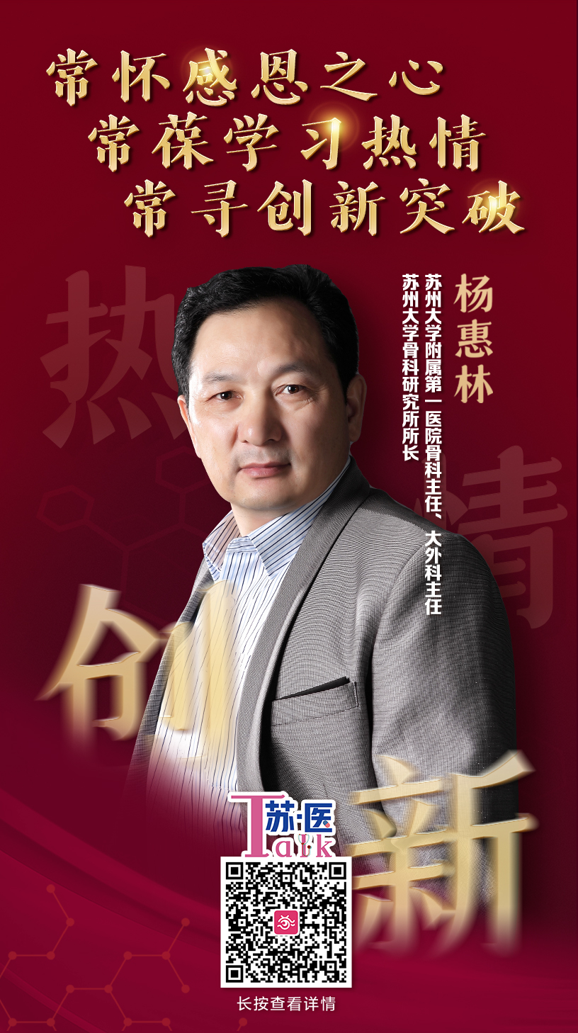 这是苏州大学附属第一医院骨科主任、骨科研究所所长杨惠林四十年不变的初心。80年代初,当杨惠林刚刚参加工作时,苏大附一院在国内最早开展了经椎弓根脊柱功能重建的研究,并取得了里程碑性的成就。