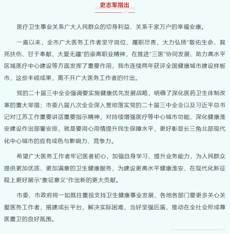 史志军顾坤开展“中国医师节”走访慰问活动