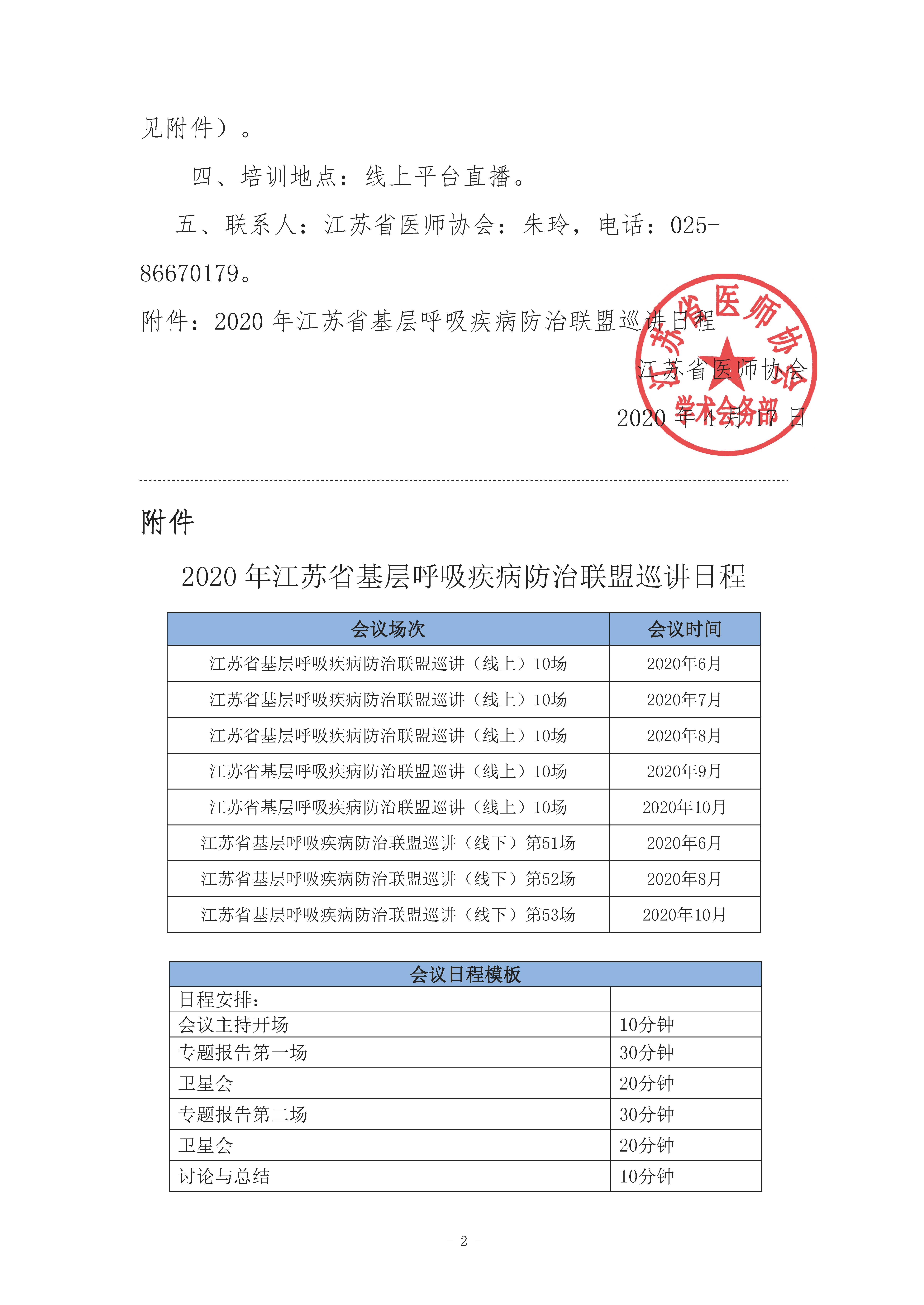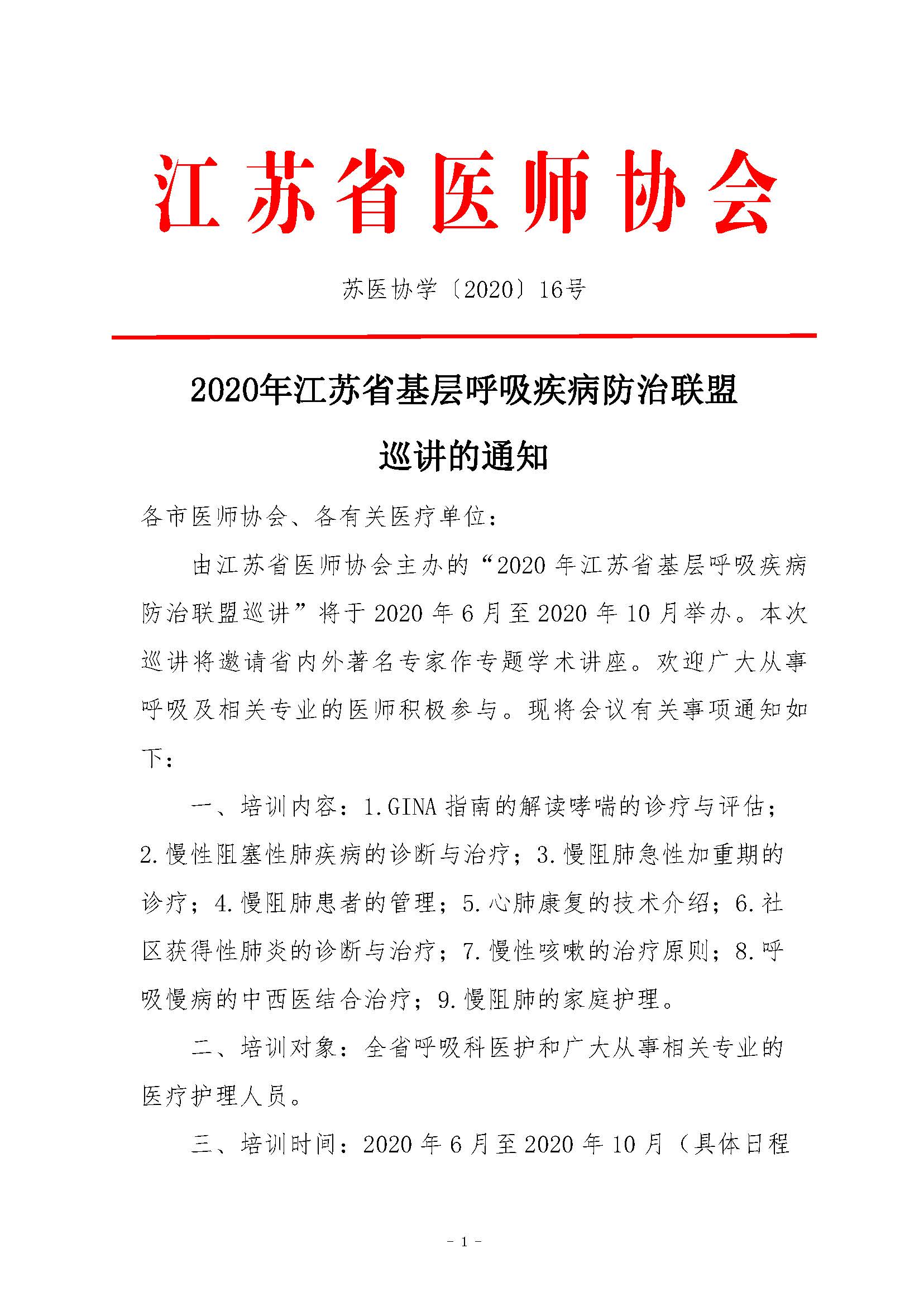 2020年江苏省基层呼吸疾病防治联盟巡讲的通知