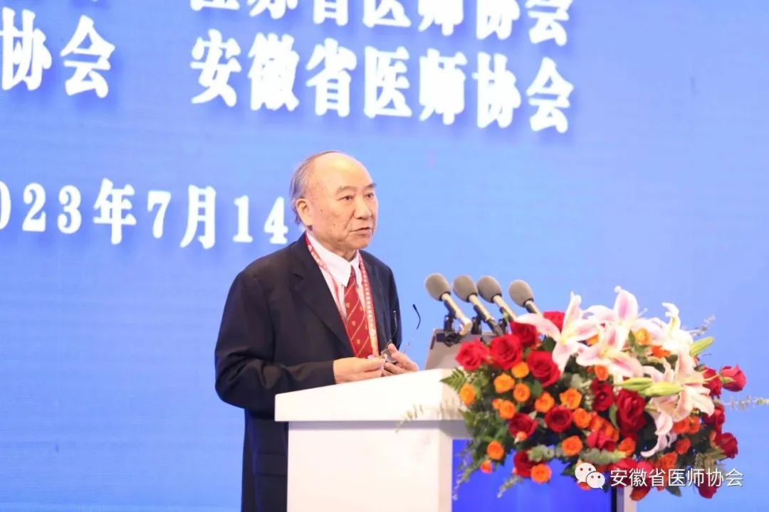 长三角医师联盟副主席、浙江省医师协会会长郑树森院士致辞。郑树森表示三省一市相聚在江淮大地召开此次大会,对大会的召开表示衷心的祝贺。今年是长三角一体化发展上升为国家战略五周年,成立长三角医师联盟在进一步加强长三角地区医师交流、合作、提高区域医疗水平和服务的质量,推进优质医疗资源共享,促进长三角地区卫生事业的发展具有重要的意义。郑树森简要介绍了浙江省医师协会的发展状况,浙江作为全国最早成立的协会,在浙江省卫生健康委的领导下,在中国医师协会的指导下,围绕着办会宗旨,把为医师服务作为立会之本,搭建了交流平台。协会将以联盟成立为契机,为联盟发展贡献浙江力量。