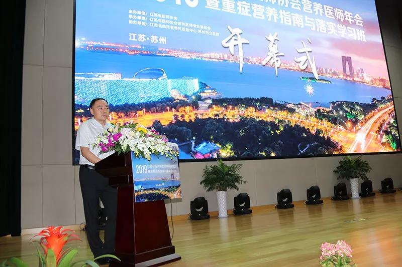 参加开幕式的嘉宾有:江苏省医师协会郭兴华会长,中国医师协会营养医师分会副会长、协和医院营养科主任陈伟教授,中华医学会重症医学分会常委许媛教授,苏州市卫健委谭伟良主任,苏州市卫健委科教处殷桂霞处长,苏州市立医院丁志良副院长等。