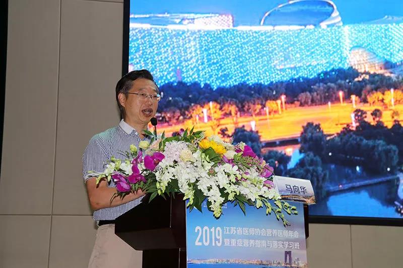 江苏省医师协会营养医师专委会主任委员马向华教授代表专委会致辞。马教授介绍了临床营养的重要性,希望与会代表们认真学习,加强交流,增进学术,不断提高,更好的为广大人民群众健康服务。