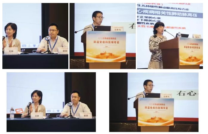稍事休息后,会议继续。下半场主持由刘琳教授、武剑教授担任。同济大学附属上海市肺科医院肺循环科宫素岗教授带来了《乱花渐欲迷人眼之多学科视角看肺动脉高压——鉴别诊断》,从多学科视角展示了CTD-PAH的临床特点及诊疗思维。江苏省人民医院呼吸科解卫平教授通过《2018肺高压诊断与治疗指南》带大家更进一步认识了肺高压这一疾病。卫星会上,南京鼓楼医院风湿免疫科冯学兵教授讲解了《SLE治疗新进展——贝利尤单抗》。