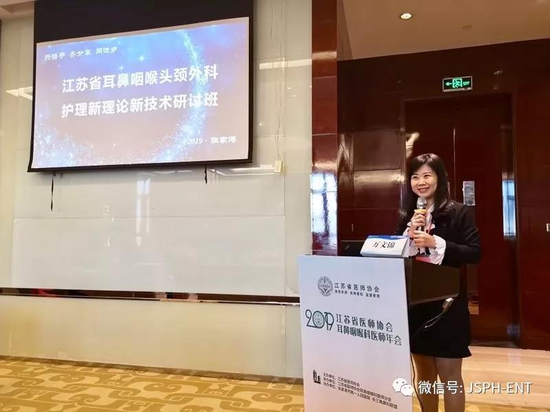 紧接着,来自省内耳鼻喉领域的护理专家们作专题讲座。汪文娟护士长(南京同仁医院)分享了“耳鼻咽喉头颈外科长效化护理管理体系之构建体会”,分别从工作计划推进和落实、病区区域长效化管理、优服开展和持续质量改进、分层培训及亚专科建设、岗位绩效管理体系五个方面进行了经验交流。吴翠良护士长(扬州大学附属医院)介绍了“阻塞性睡眠呼吸暂停低通气综合征患者如何开展自我管理”,并展示了护理团队制作的宣教视频“舌操”在OSAS患者口面肌功能训练方面的应用。万文锦护士长以“FESS术后疼痛如何进行动态管理”为题,从基础到专科,系统讲解了鼻内镜术后疼痛产生的机制及如何从不同节点对患者疼痛进行动态管理。孙振护士长(南京鼓楼医院)就“气管切开非机械通气患者如何居家护理”做了详细的报告,以科内护士亲身家访为例,结合国外护理现状,讲解了家庭访视的主要内容与重点。刘萍护士长(江苏省人民医院)就临床另一大热点“术后加速康复”(ERAS)进行论述,并将耳鼻咽喉头颈外科ERAS进程中的具体实施一一举例,引发了与会代表的热烈讨论。除此之外,随着时代的发展,患者心理健康状况日益成为临床关注的热点之一,专家们还针对“中青年突发性聋患者心理健康状况与人格特征相关性分析”、“基于专科护理质量指标建设之耳鼻咽喉科围手术期护理质量管理”等进行剖析和讨论。