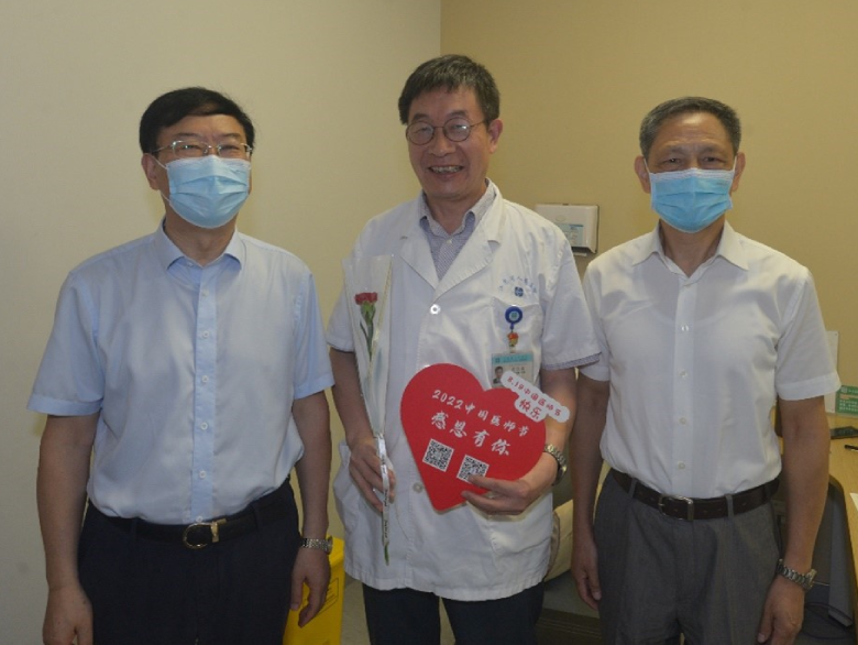 接着,刘秘书长一行来到江苏省中医院慰问了名医堂国医大师和中医专家,并向临床一线医师代表送上鲜花及节日贺卡。省中医院书记方祝元、院长翟玉祥、副院长马朝群及院中层干部参加了献花活动。