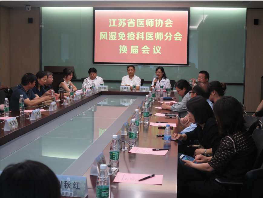 2018年9月20日江苏省医师协会风湿免疫科医师分会换届会议在南京召开。江苏省医师协会副秘书长全钰平和委员候选人出席了会议。会议由省医师协会会员部介绍了风湿免疫科医师分会换届的背景及筹备情况、第三届委员会委员候选人的产生、资格审查和委员候选人名单,按照程序进行了选举,产生了江苏省医师协会风湿免疫科医师分会第三届委员会。之后选举产生了风湿免疫科医师分会第三届委员会的会长、副会长、总干事。江苏省人民医院张缪佳当选为会长,苏北人民医院张育、常州市第一人民医院吴敏、南通大学附属医院达展云、南京鼓楼医院冯学兵当选为副会长,江苏省人民医院谈文峰当选为副会长兼总干事。
