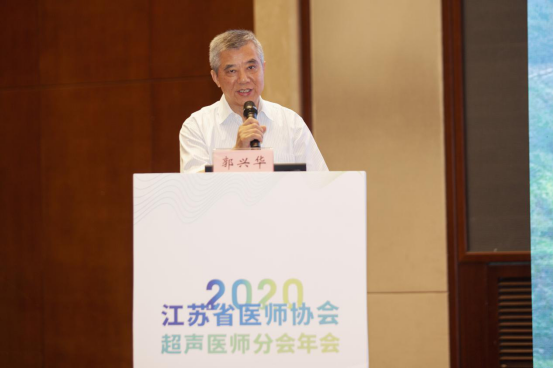 省医师协会会长郭兴华教授致开幕辞,表示此次会议是今年疫情以来江苏省医师协会超声医师分会的第一次线下会议,在医师节即将到来之际,表达了对超声医生们的敬意,他肯定了省内超声学科的水平,勉励与会代表不断提升超声医学的科研能力和学术水平。