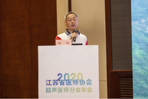 省医师协会超声医师分会会长杨斌教授介绍本次年会是省医师协会超声医师分会第二届年会,也是省超声专业会议第一次来到连云港,并表达了对江苏超声事业发展的美好期望。