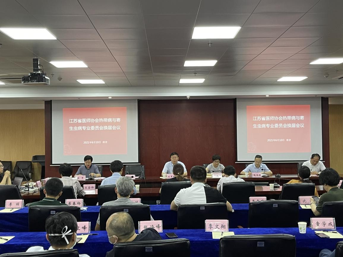 2021年6月10日下午,江苏省医师协会热带病与寄生虫病专业委员会换届会议在南京顺利举行。江苏省医师协会热带病与寄生虫病专业委员会第三届委员会委员候选人参加会议。江苏省医师协会副会长兼秘书长刘彦群教授出席会议。